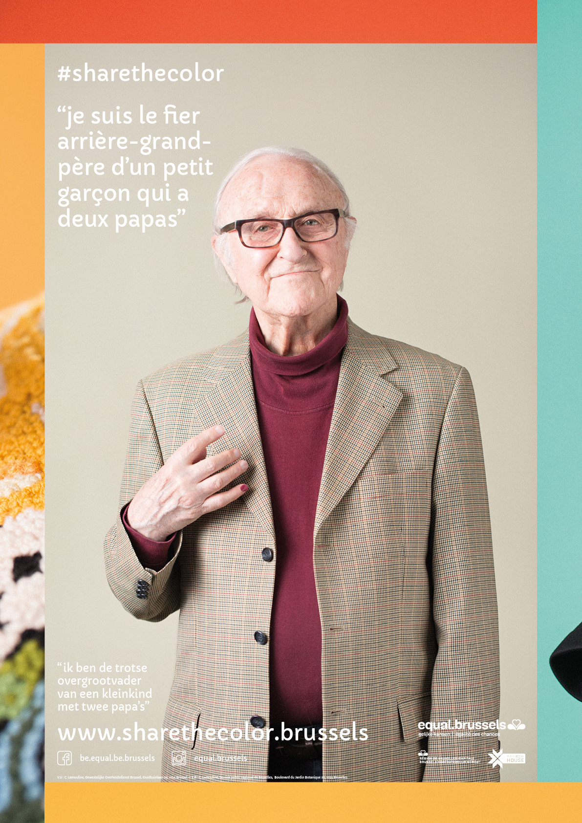 La campagne #sharethecolor est un outil important pour promouvoir les droits des Bruxellois.e.s sur la base de l’orientation sexuelle et de l’identité de genre (SOGI). Equal.brussels a créé ce concept autour duquel une thématique spécifique se décline à chaque campagne.